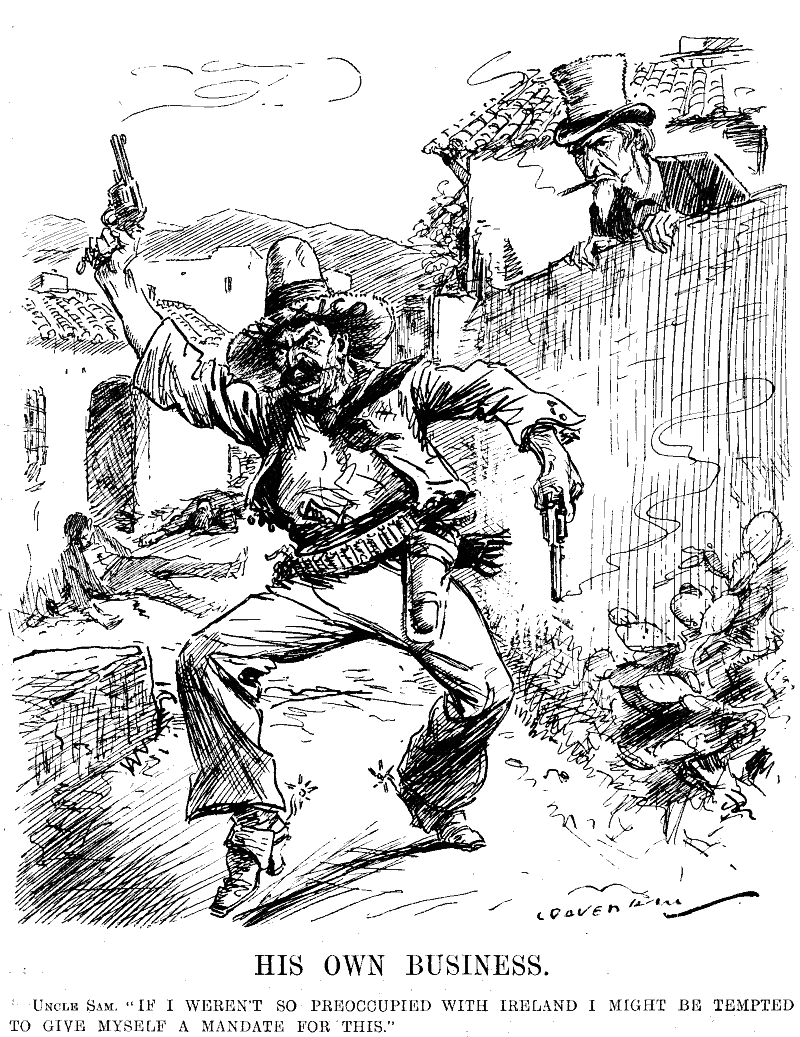 Uncle Sam. "IF I WEREN'T SO PREOCCUPIED WITH IRELAND I MIGHT BE TEMPTED TO GIVE MYSELF A MANDATE FOR THIS."